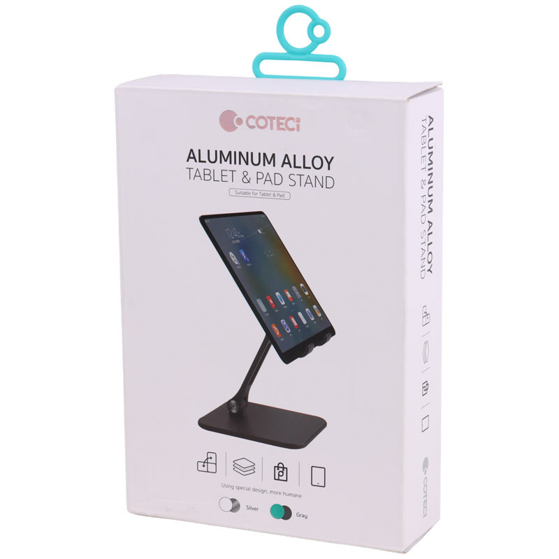 استند تبلت و آیپد COTEetCI Aluminum Alloy Tablet & Pad Stand یک پایه نگهدارنده با طراحی مینیمال و بدنه تمام فلزی از جنس آلومینیوم آلیاژی است که برای نگهداری انواع تبلت و آیپد مناسب میباشد. این محصول با کیفیت ساخت بالا و طراحی ارگونومیک، زاویه دید مناسبی را برای تماشای فیلم، وبگردی، مطالعه و تماس تصویری فراهم میکند.سطح نگهدارنده با پوشش سیلیکونی ضد لغزش پوشانده شده.