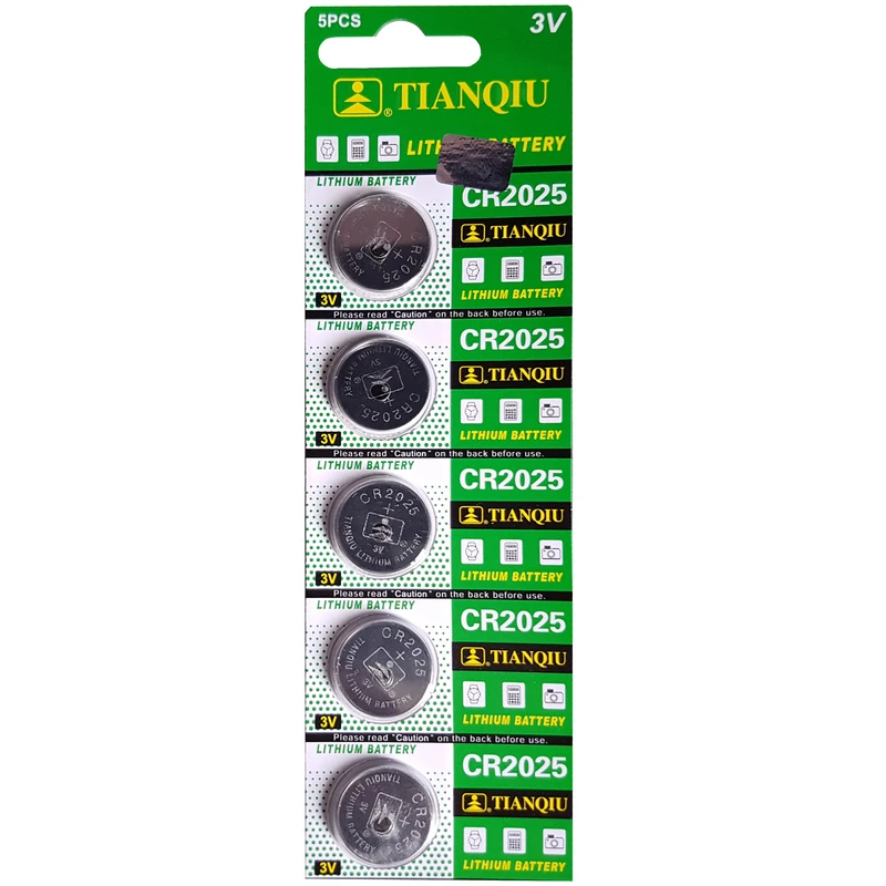 باتری «تیانکیو» مدل «CR2025» به صورت یک پک 5 عدد تولید شده و از نوع باتریهای لیتیومی است که تقریبا 2 برابر نسبت به باتریهای قدیمیتر کارآیی و دوام دارد.