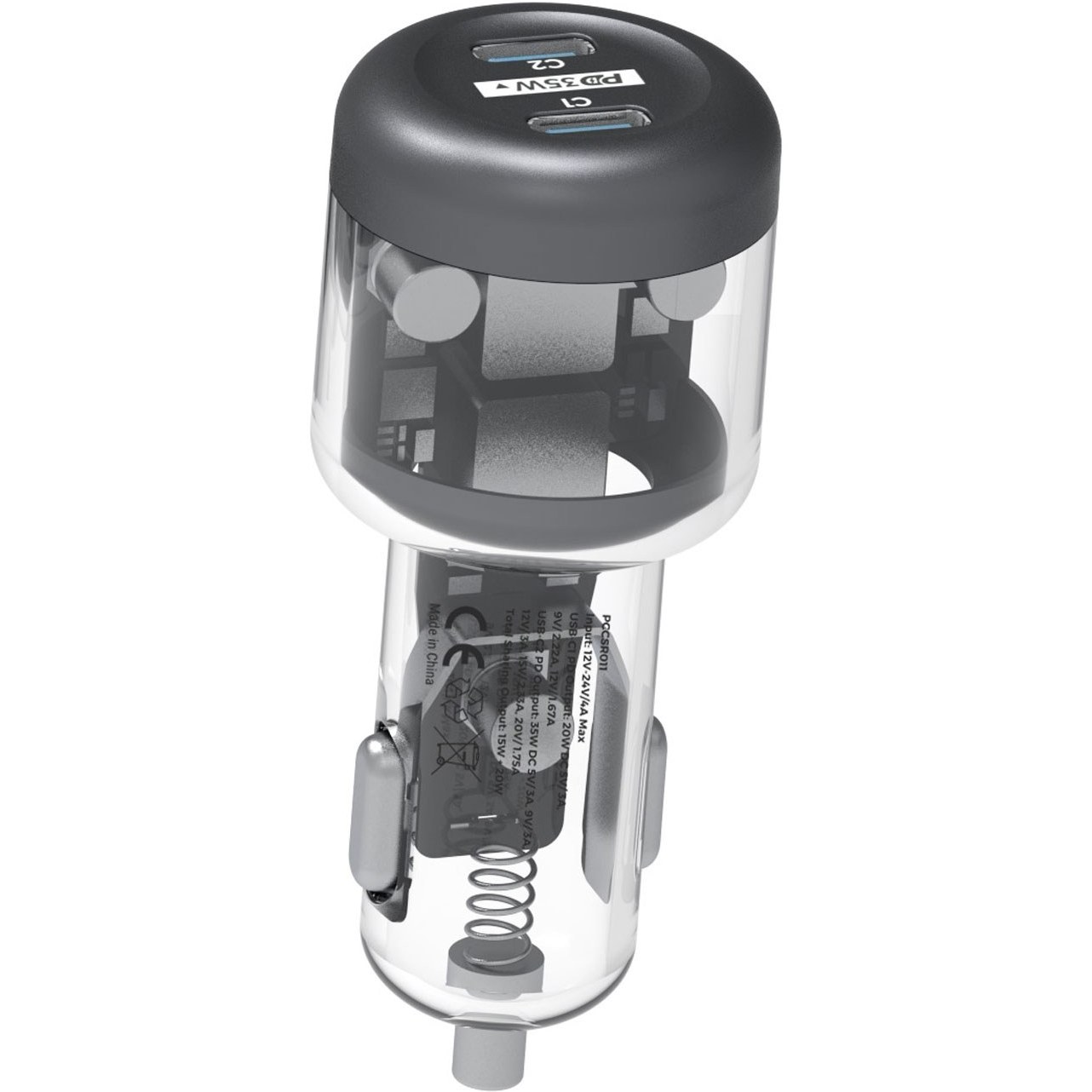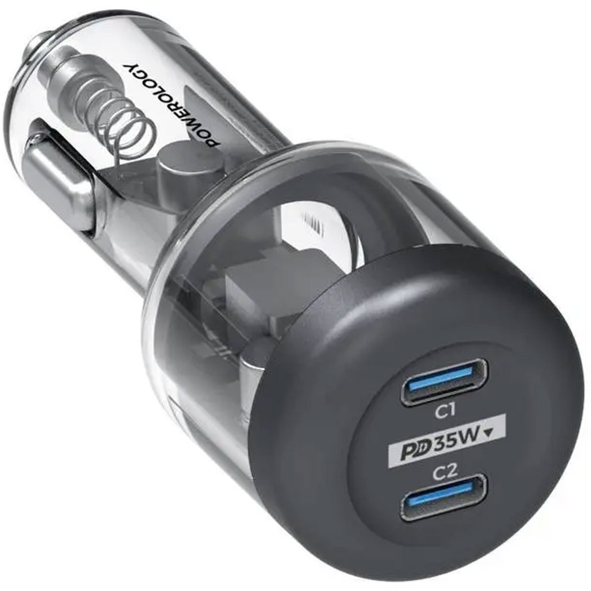 شارژر فندکی خودرو پاورولوژی مجهز به دو پورت USB C با فناوری PD و توان خروجی کلی شارژر 35 وات مناسب برای شارژ گوشی های آیفون و اندروید می باشد.دارای مقاومت در برابر حرارت است.