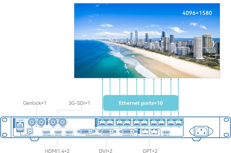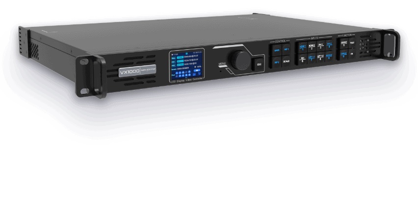 ویدیو پروسسور نوا استار مدل VX1000 یکی از بهرین محصولات این شرکت میباشد که با دارا بودن کارت سندر درون خود، میتواند نمایشگری با 6.5 میلیون پیکسل را راهاندازی نماید. این نمایشگر با 10 پورت شبکه گیگابایت تعبیه شده در پشت پروسسور نیاز شما به کنترلر خارجی را از بین میبرد. هر پورت توانایی روشن کردن 650000 پیکسل را دارد.